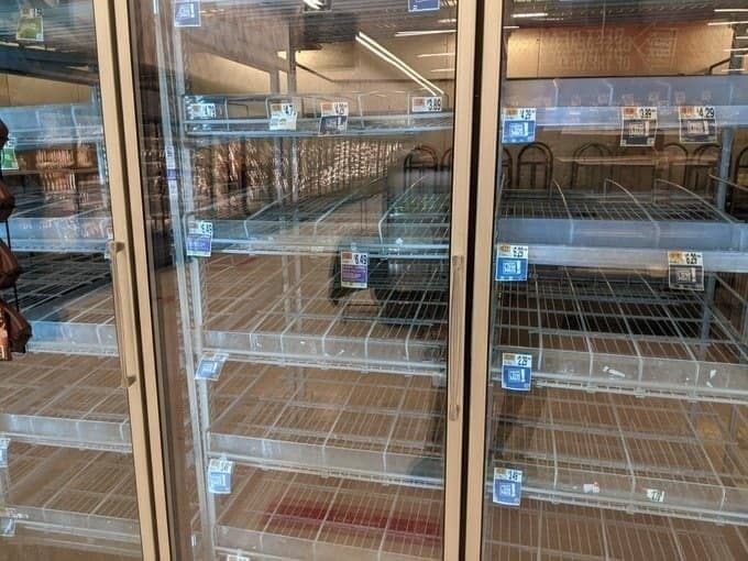 صور انتشرت في وسائل التواصل الاجتماعي وأثارت موجة من الخوف من الخطر المحدق. هي صور لمحلات بقالة في الولايات المتحدة الامريكية فارغة، بالكاد يمكننا ان نلمح بضاعة على رفوفها.